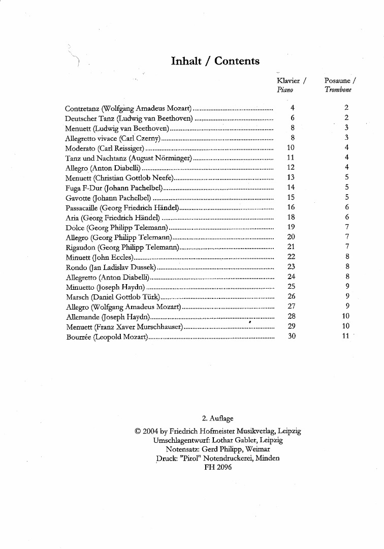 Bladmuziek voor Trombone en Piano. Een uitgave van Friedrich Hofmeister Musikverlag.