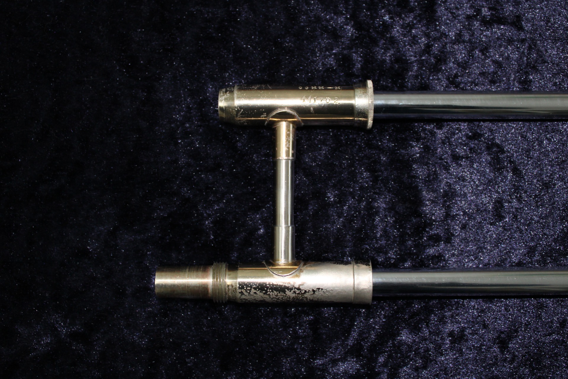 Te koop een Martin Committee Handcraft Trombone uit 1942. De Martin Committee instrumenten waren het neusje van de zalm van de Martin fabriek en waren populair onder jazzmusici. De instrumenten werden ontworpen in samenspraak met een commissie(committee). Voor trombone bestond dit committee naast voorzitter Chuck Campbell uit Miff Mole, Jack Jenney, Al Angelotta, Andy Russo, Al Philburn, Phil Giardina, Lloyd Turner en Charlie Butterfield. Instrument heeft een 7 inch beker en een boring van 0.480 inch. De trombone is in een goede bespeelbare staat en heeft wat lakschade, deukjes en slijtage normaal voor de leeftijd van de trombone.